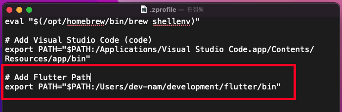 export PATH="$PATH:/Users/dev-nam/development/flutter/bin"