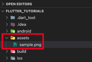 프로젝트의 최상위 위치에 assets 폴더를 생성합니다. 참고로 폴더 이름은 자유롭게 사용하시면 됩니다. 그리고 해당 폴더에 우리가 사용할 이미지를 추가합니다.