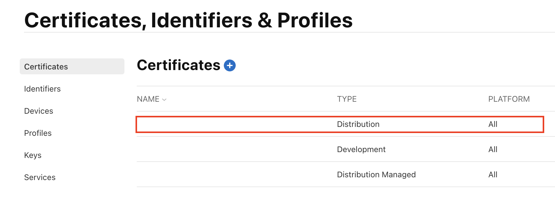 애플 개발자 페이지(https://developer.apple.com/)에 접속해서 Certificates 페이지로 들어가 만료 예정인 인증서를 선택합니다.
